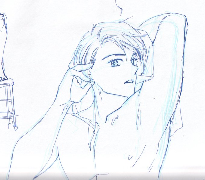 さっき友達とリモートクロッキー会して遊んだんですけど、 「このポーズはお風呂あがりで髪を拭いてるせぎくんにしようぜ!」 「目線だけリチャの方向いて!」 みたいなわちゃわちゃの勢いでらくがきしたせぎくん…☺️