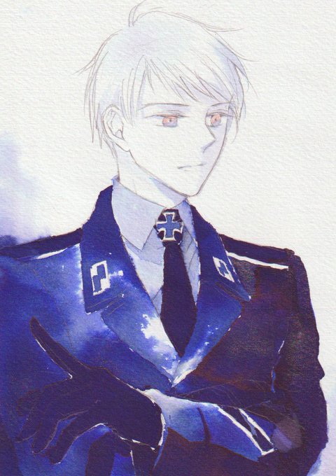 らくがきその2 プルシアンブルーの人・プ口イセンさん 軍服のパーツが細かすぎて失敗の連続で、塗ってる時間より何とかリカバリーしようと必死にあれこれしてる時間のほうが長かったのですが…フリートとして上げてみます😂