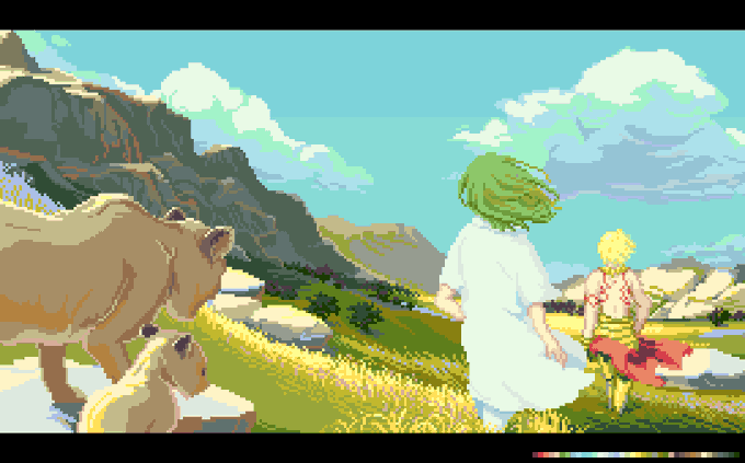 #今年も残りわずかなのでお気に入りの4枚を貼る #pixelart なんとか今年も描いてこれた記念に。 今年は色んなキャラを描く、光を動かす、あたりをぼんやりとテーマにしてました。 楽しかったです。