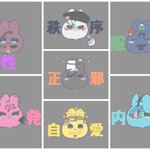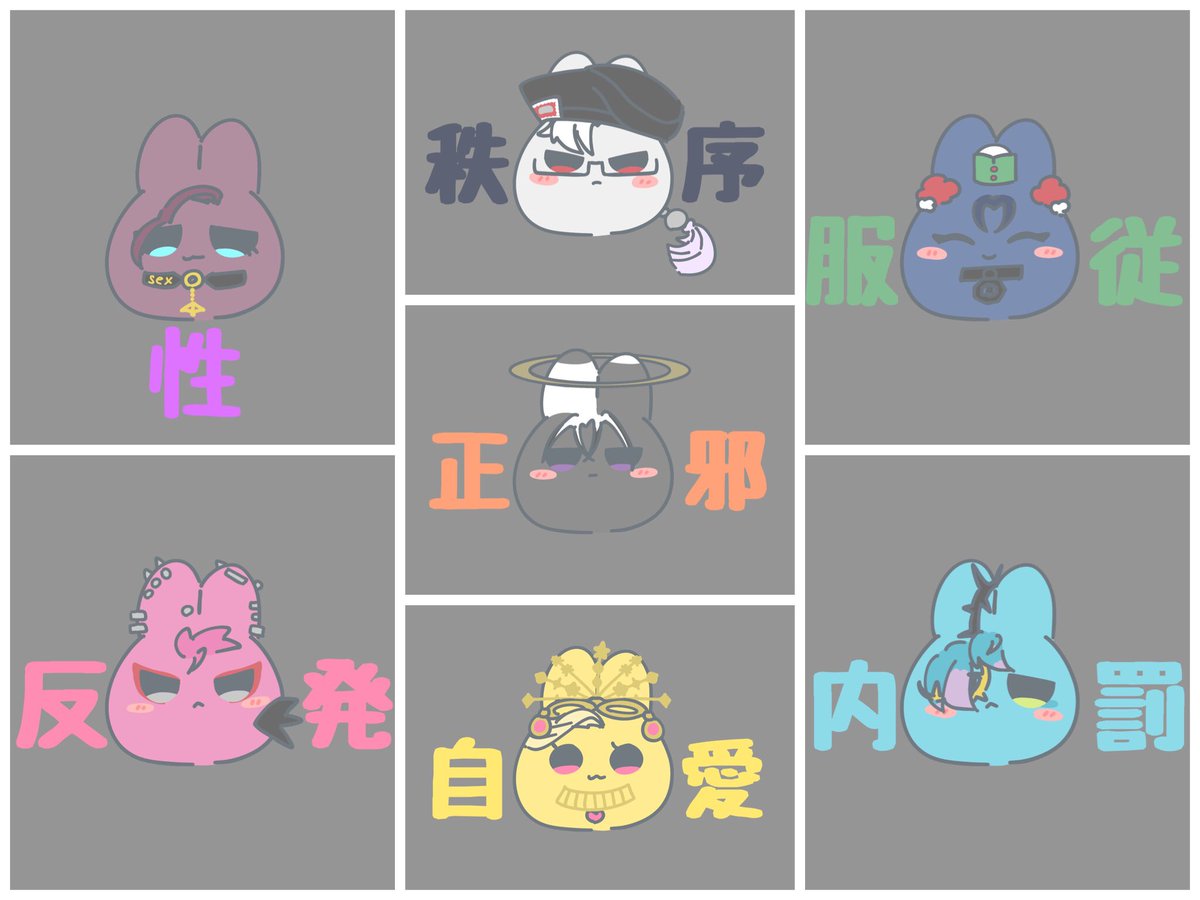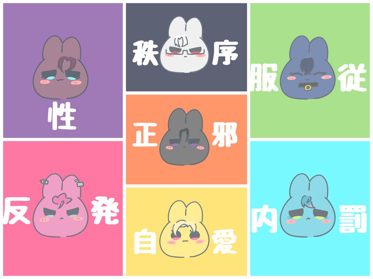 #カリスマファンアート 🐰カリうさとカリブレうさ🐰 🧡🩶💛💚🩷💜🩵 (1/5) ↓↓↓リプ欄に単体イラスト