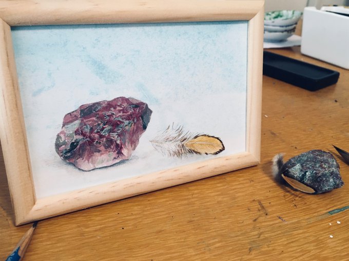 石と羽 綺麗なあかむらさきいろ #水彩画 #透明水彩 #水彩画 #art #水彩 #創作 #アート #絵画 #芸術の輪 #みんなで楽しむTwitter展覧会 #スケッチ #石ころ 羽 #Watercolor #watercolorpainting #sketch #stone #WINGS