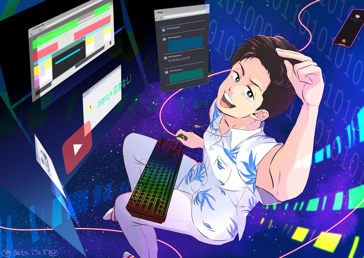 飯田くんのお誕生日にむけて描いた路地裏組!
