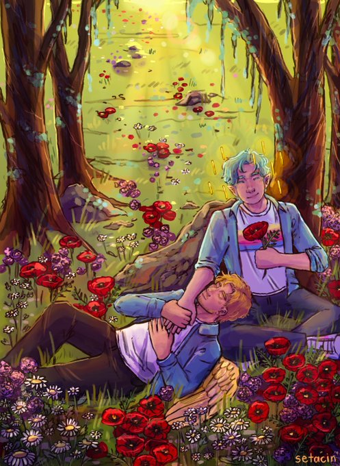 the second pinch hit i did for the hermbimas gift exchange! this time we have flower husbands with alliums + dasies + poppies :D #scottsmajorfanart #solidaritygamingfanart #3rdlifefanart #3rdlifesmp