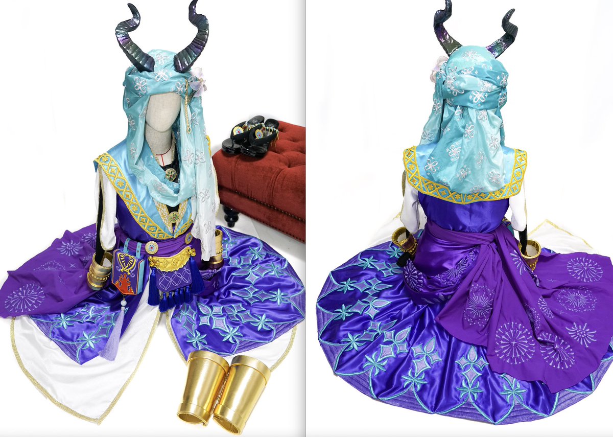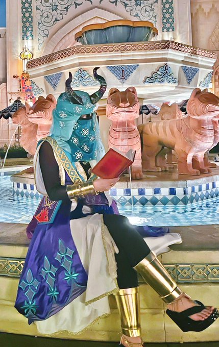 #今年一番気合い入れて作ったコスプレ衣装見せて 刺繍〜✨ 去年の7月から刺繍しはじめて、やっとこ仕上がったツイステのヤーサミーナシルクのマレウスのお衣装は思い入れが強いっす。 ツノはマグネット着脱式。 ターバンにもウィッグにも装着可♪(o ̄∇ ̄)/