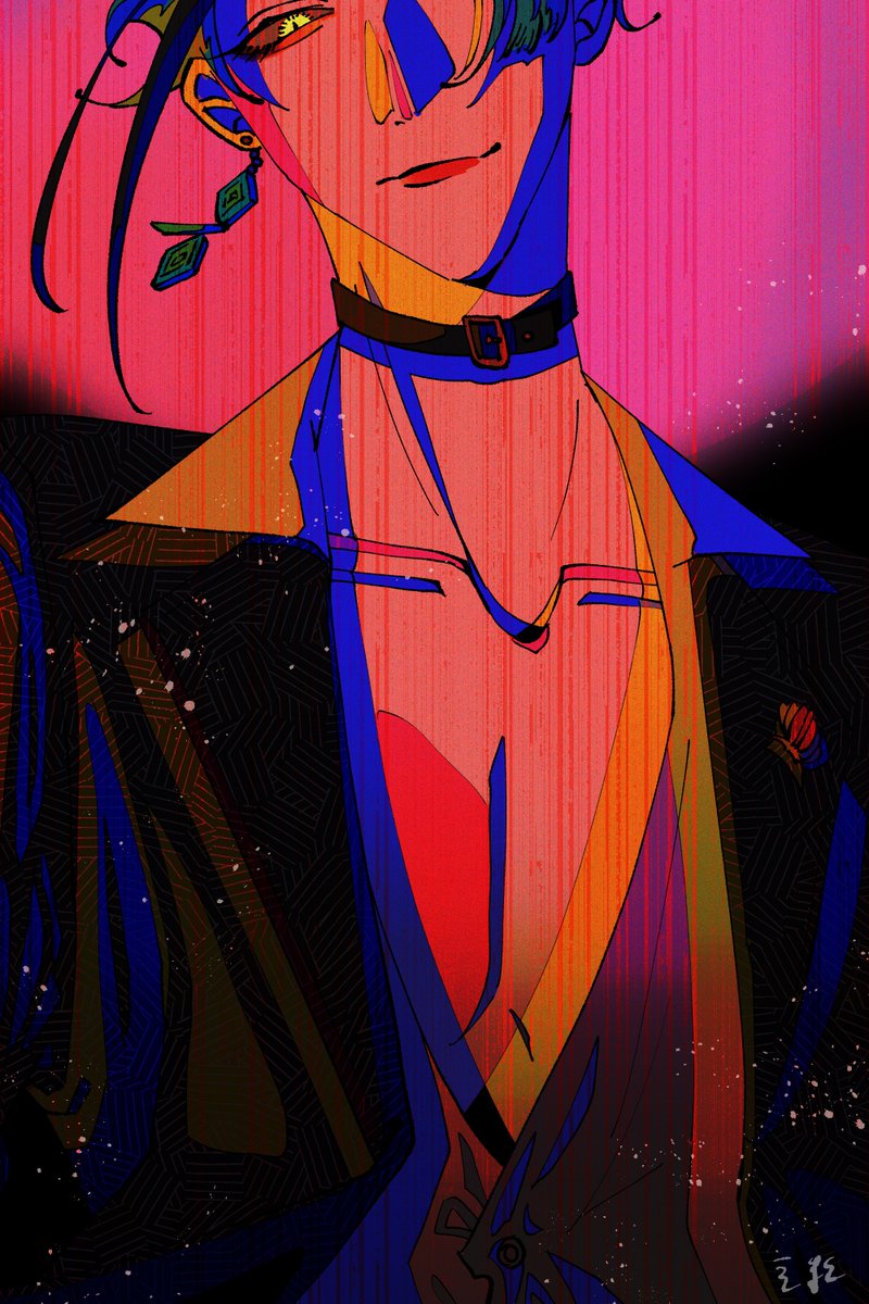 #いいねした人の画像欄覗いて素敵絵を私の絵柄で描いてもいいですか 6人目クラゲサン(@gera_ku_rage_ )のMr.物騒お借りしました、いいねしてくれてありがとうございました! 元絵のギャル感マシマシオーラはどこへ…?🤔