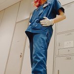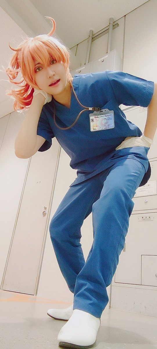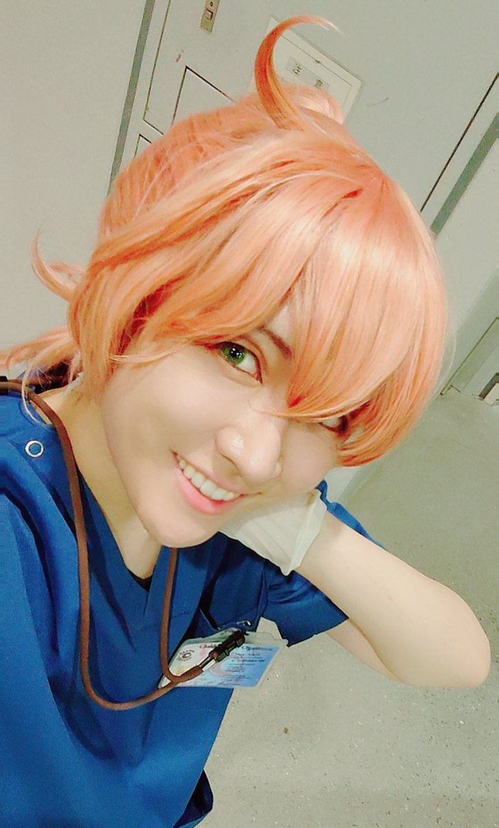【コス】 恐らくロマニはこんなに笑わないから表情は解釈違いなんですけどカラコンがきれいに写ったので載せます ありがたいことに会う人会う人から差し入れをもらっていたらスクラブのポケットがお菓子で溢れました🍭