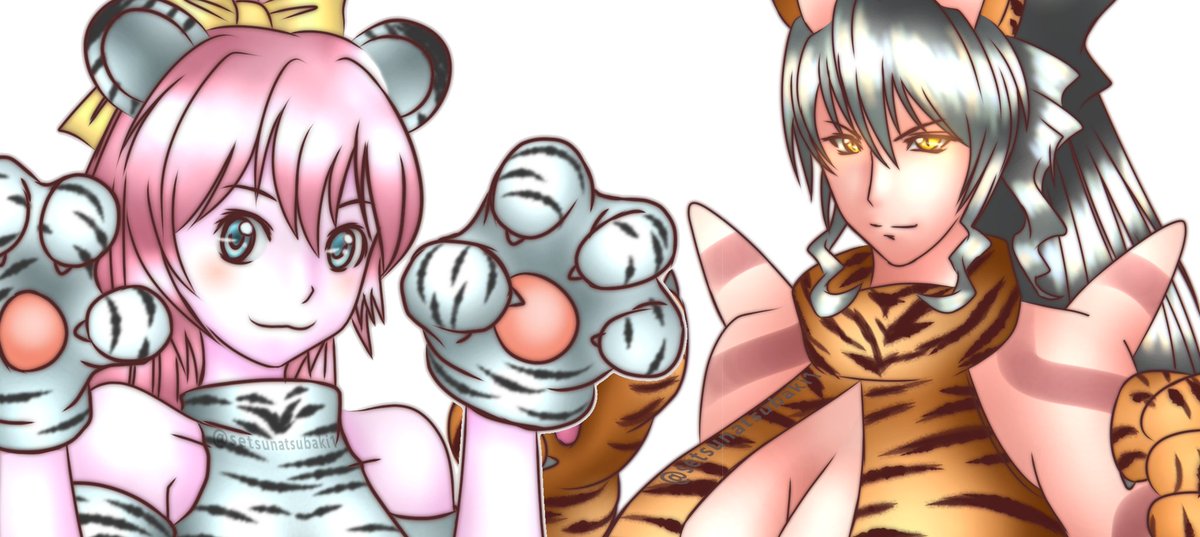 #夏が終わりそうだし今年描いた水着絵を貼ろう オガ子のセツナと メスラのセツナ。