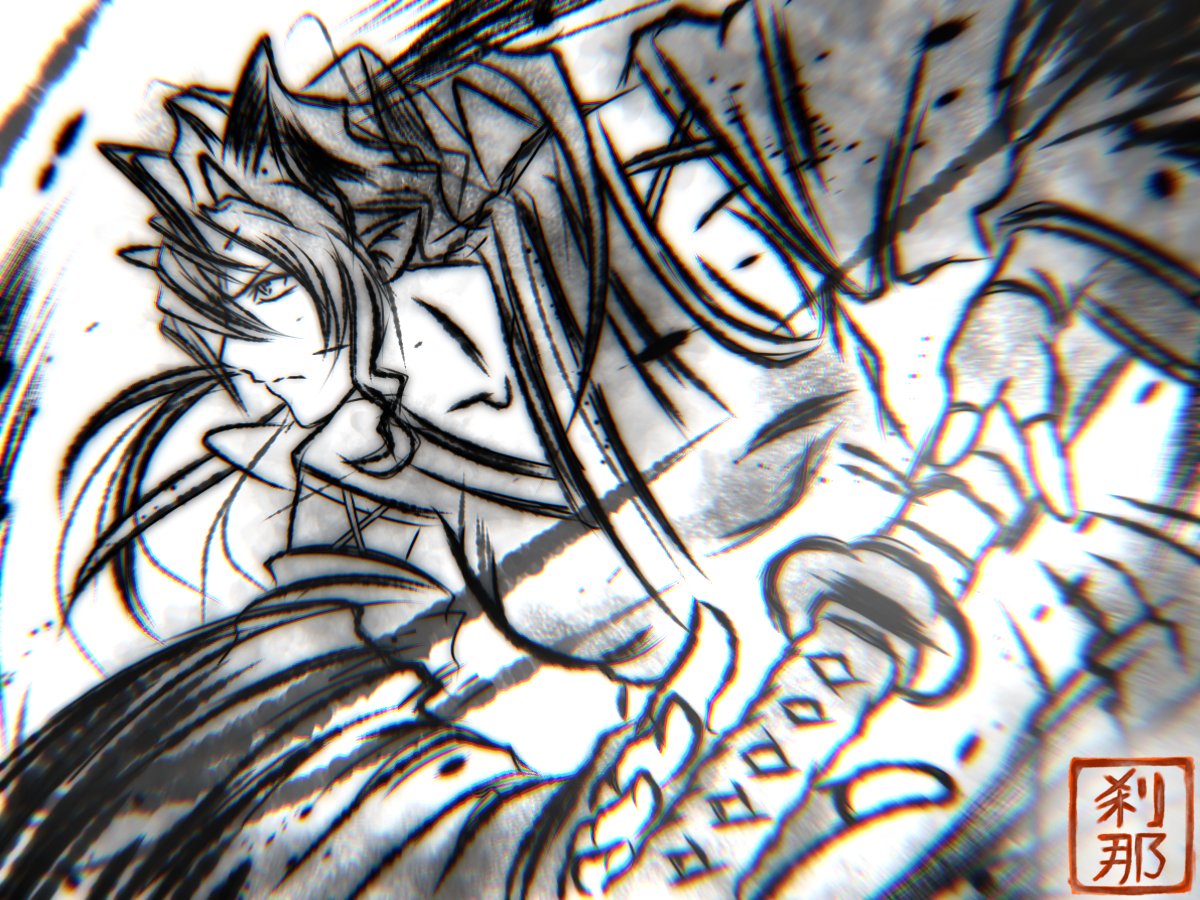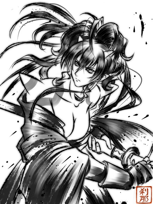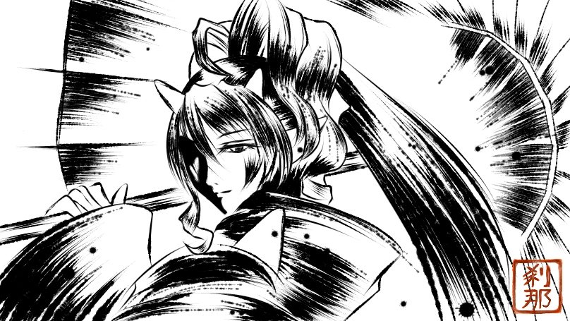 #過去絵を投げて絵を描いた気になろうキャンペーン 墨絵風の自キャラ。