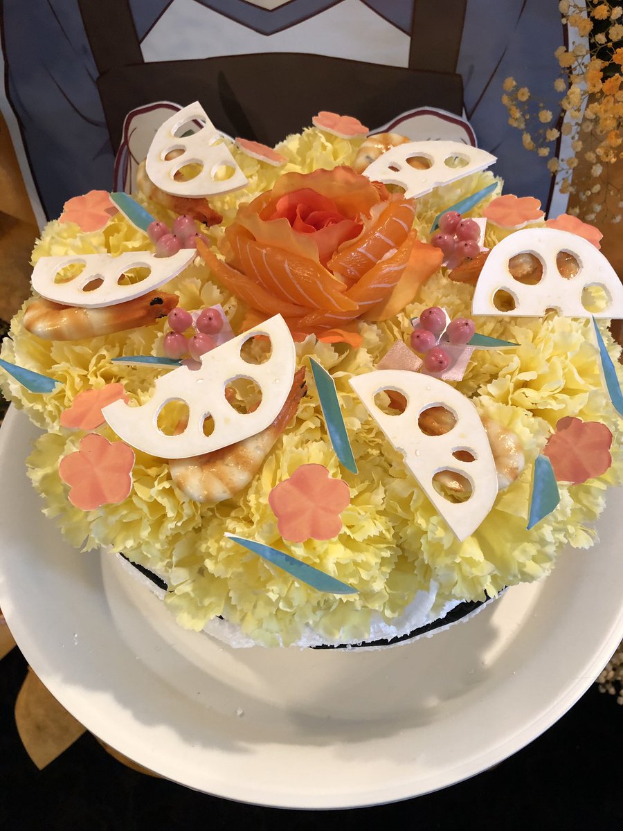 #衛宮ごはん 衛宮士郎フラワースタンドみなさまのおかげでとても存在感のある大きさ&立体のお寿司とを作ることができました!ありがとうございます!フラスタなんと高さ180センチ!とてもおっきいです!お寿司☺️すごい!