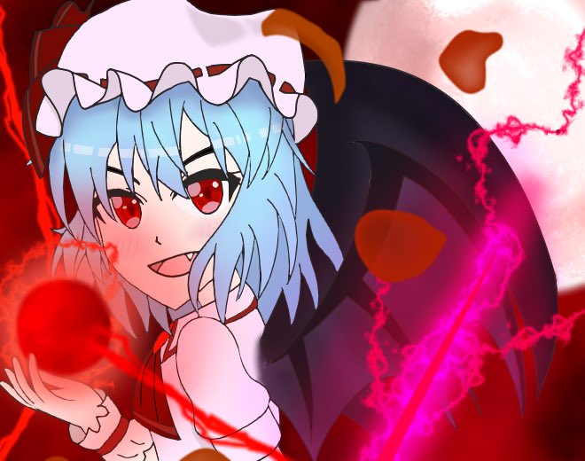 レミリア「紅魔館の主である私が相手してあげるわ!」 やっと完成しました!!(´;ω;`) めちゃくちゃ上手く行った感じがします!! アンケートありがとうございました!🍀 #東方Project #レミリア・スカーレット #イラスト #絵師さんと繋がりたい #イラストレーターさんと繋がりたい