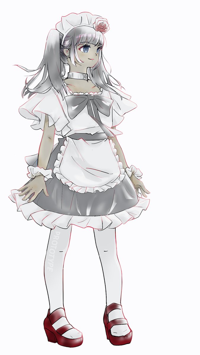 赤系のグラデーションで線画トレスをやったバージョン、、いままで線画トレスを軽視してました(汗)、だいぶイメージかわりますね。とくにのっぺりしていた肌の印象が良くなった気がします、、 #イラスト #メイド