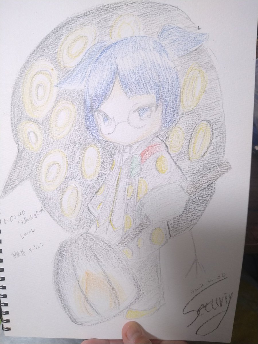 7 29 #ロボトミー版深夜の真剣お絵描き60分一本勝負 アナログで見づらいけど、大鳥 うちの筆頭エースオーウェンくん書きました 22/04/30 23:09