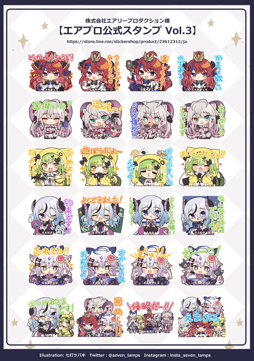 【🎨お仕事報告🎨】 株式会社エアリープロダクション様より【エアプロ公式スタンプVol.3】を描かせて頂きました!! 個性一杯で可愛いLINEスタンプとなっておりますので、是非ゲットして下さい!!💞💞💞 twitter.com/airypro/status…