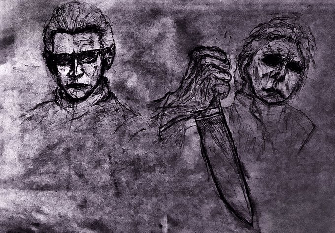 #映画 #ハロウィン #バイオハザード #HALLOWEEN #BIOHAZARD #アルバート・ウェスカー #AlbertWesker #MichaelMyers #絵 #イラスト #イラスト好きさんと繋がりたい #イラスト練習中 右は殺人鬼ブギーマン(本名マイケル・マイヤーズ)&左はアルバート・ウェスカーを描きました。