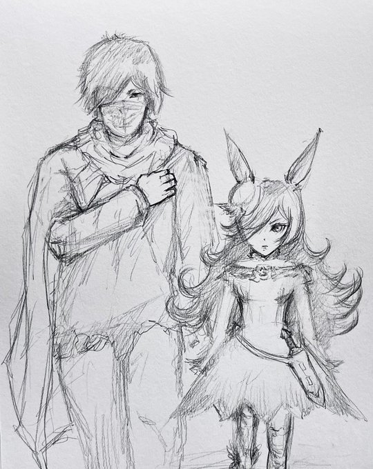 3 13 ライスちゃんと漆黒トレーナートレーナーさん登場。 #ウマ娘 #ライスシャワー #絵描きさんと繋がりたい 22/02/22 14:30