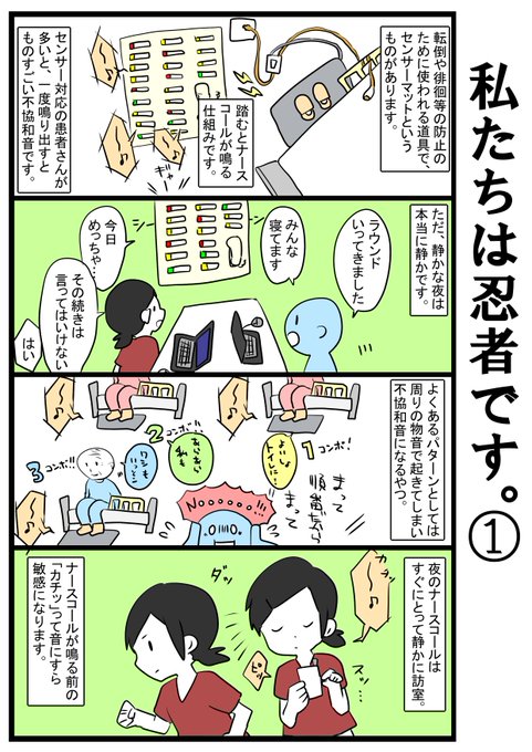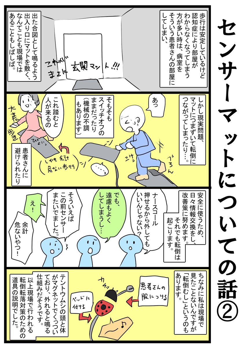 私たちは忍者な話と、センサーマットについての説明の話。 こちらも通常ツイートした内容だったのですが、いいねが多かったので漫画にしてみました。ついでにセンサーマットについてできる限り解説してみました。