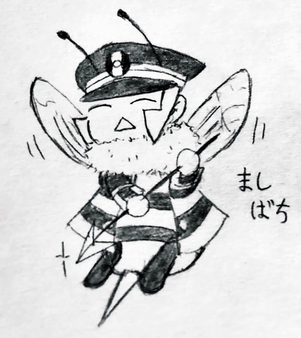 昨日ディスコードで話した「ましばち」をまた描いてみた! 今度は働きましばちと一緒🍯