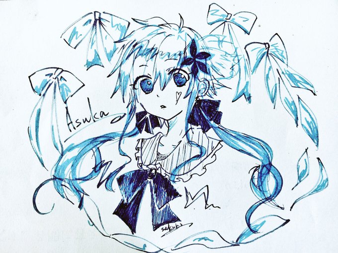 #二宮飛鳥 リボン×なんちゃっておさげ×青の キュート宮飛鳥くん描きました