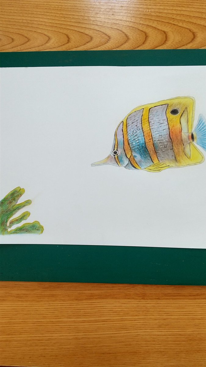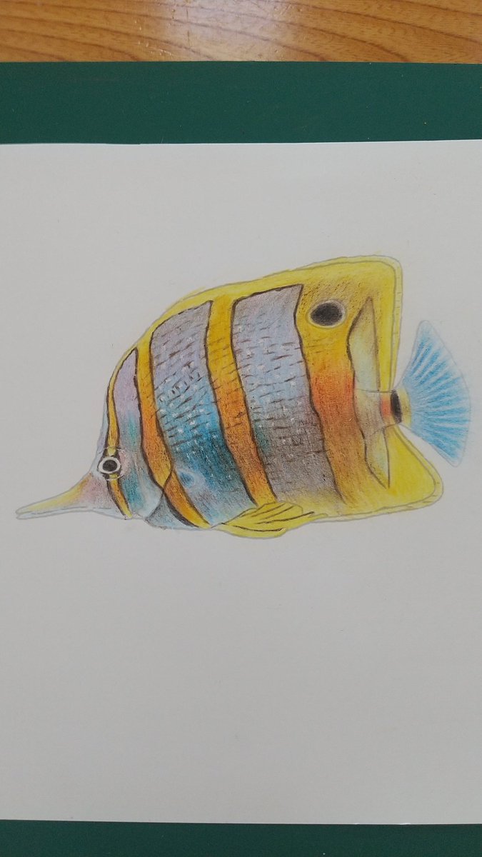 やっと出来ました❗三賀さんの熱帯魚🐠陰影難しかったです💦#色鉛筆画 #色鉛筆画上達ドリル動物編 #イロドリアル #イラスト好きな人と繋がりたい #絵描きさんと繋がりたい #みんなで楽しむTwitter展覧会