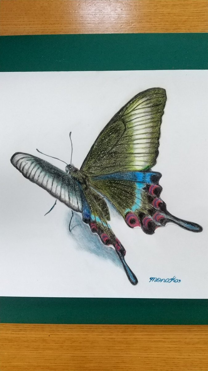 出来ました~❗石川先生のミヤマカラスアゲハ✨途中まで楽しく描けたけど鉄筆の凹ませ具合と色付け が思うようにいかず泣いた😭#色鉛筆画 #イロドリアル #色鉛筆画上達ドリル動物編 #絵描きさんと繫がりたい #イラスト好きさんと繋がりたい #みんなで楽しむTwitter展覧会