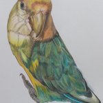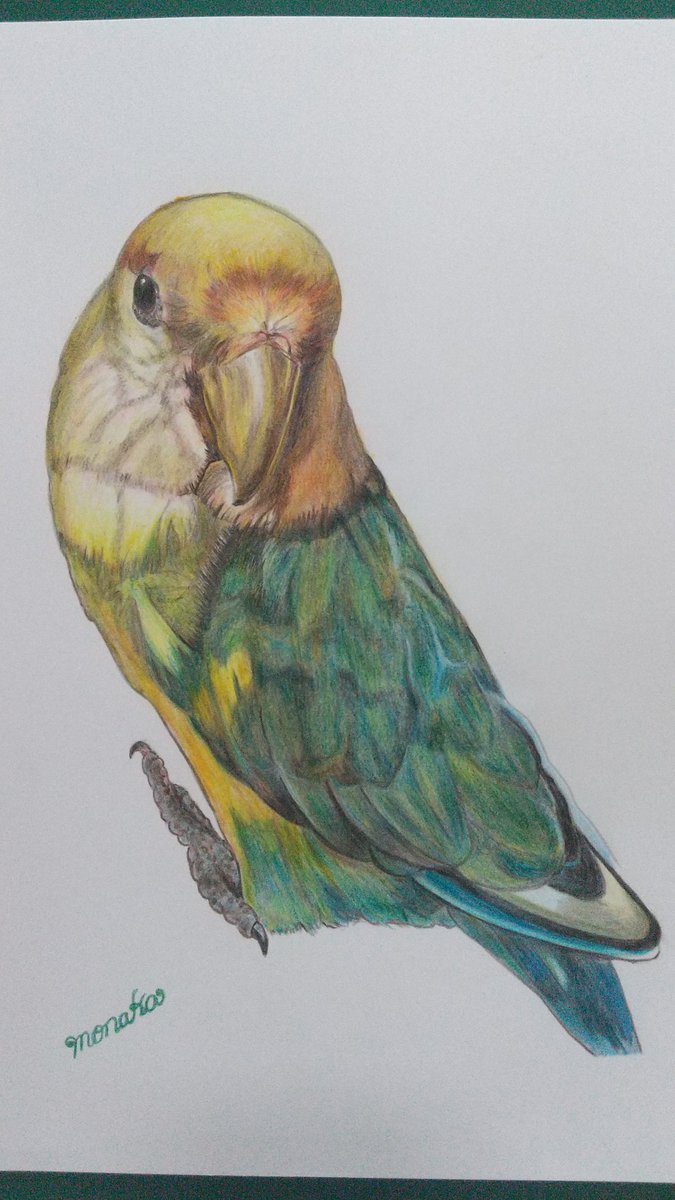 出来ました~✨ぼんぼん先生のコザクラインコ🦜グリザイユ難しいけど楽しかったです😆脚の色は焦茶薄めで描きました💨#色鉛筆画 #色鉛筆画上達ドリル動物編 #絵描きさんと繫がりたい #イラスト好きな人と繋がりたい #みんなで楽しむTwitter展覧会