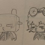 アナログ難しすぎ! 上手く描けへん😖 上目遣いする兄弟です🐶📦 #bintrollFA #しるこ さん #はこたろー さん