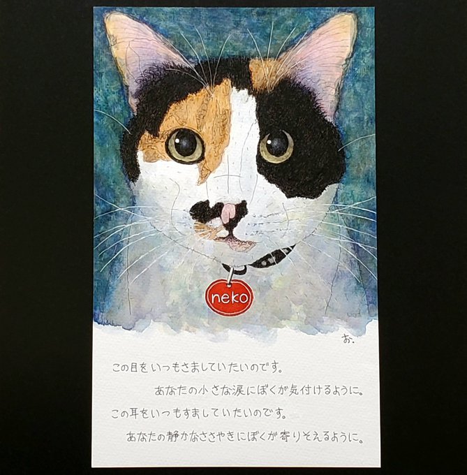 1 4 猫の絵を描きました。ご覧になって頂ければ幸いです。 Facebookページを始めました。 ポストカードが購入できます。 facebook.com/neko.e.kotoba 23/04/01 12:07
