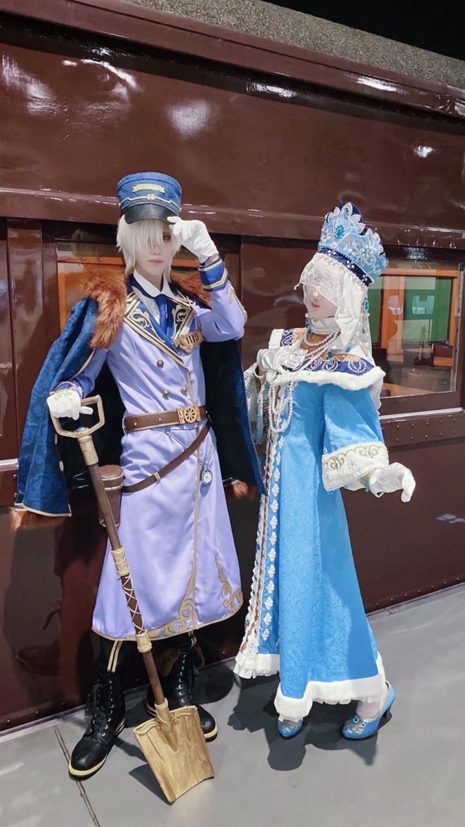 会場でお声かけ頂いて日々流さんのソフィアさんと並ばせて貰った写真いただいたんだけど、身長差が"良"すぎたな....... 墓守のとき高身長にしたくて、ノンヒールブーツの内側でおおよそ176くらいに盛ってる🤗笑