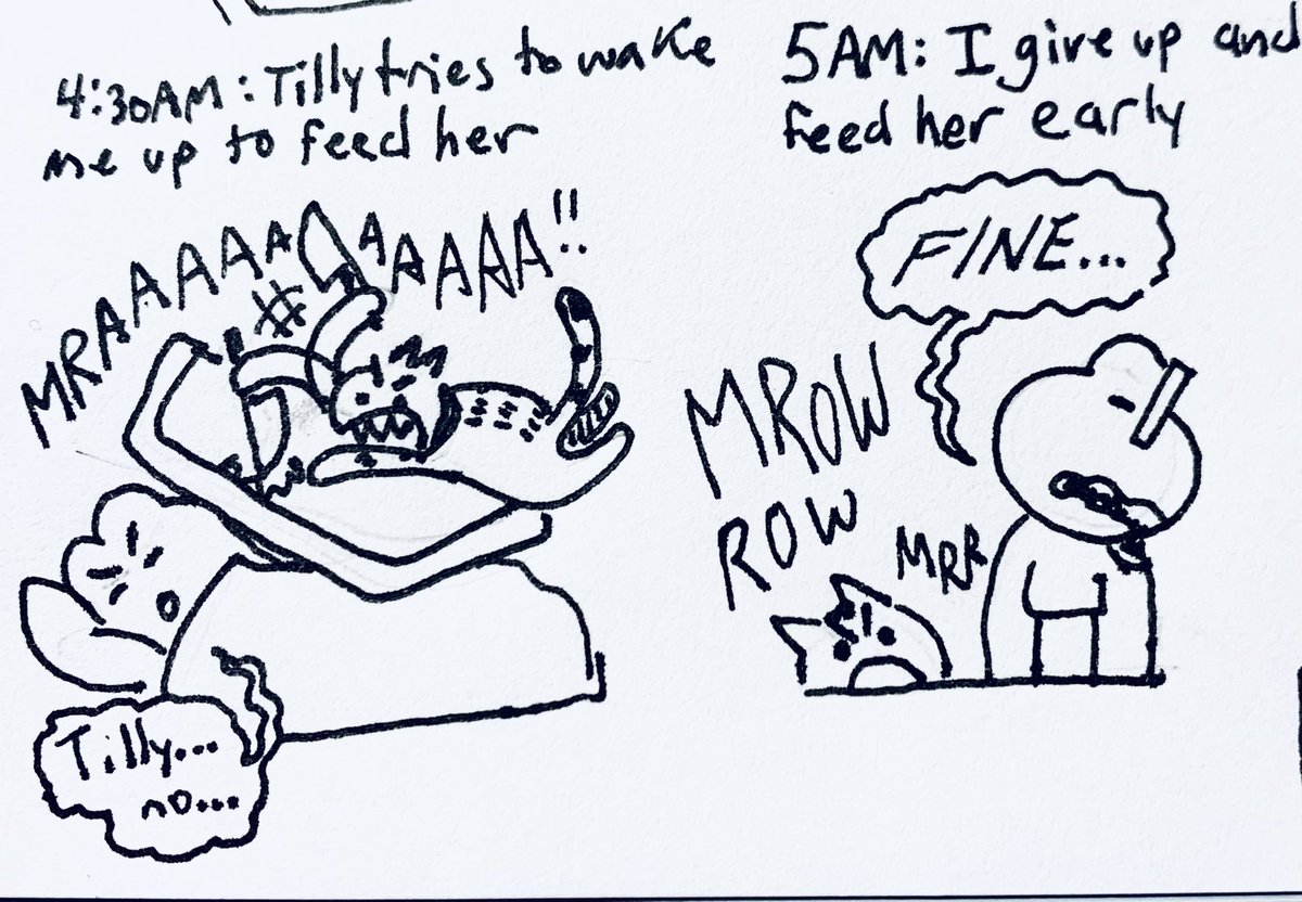 Tilly is supposed to eat at 6am but she Will Not be ignored #hourlycomicday #hourlycomicday2022