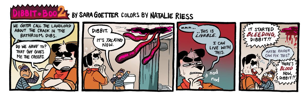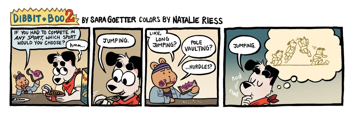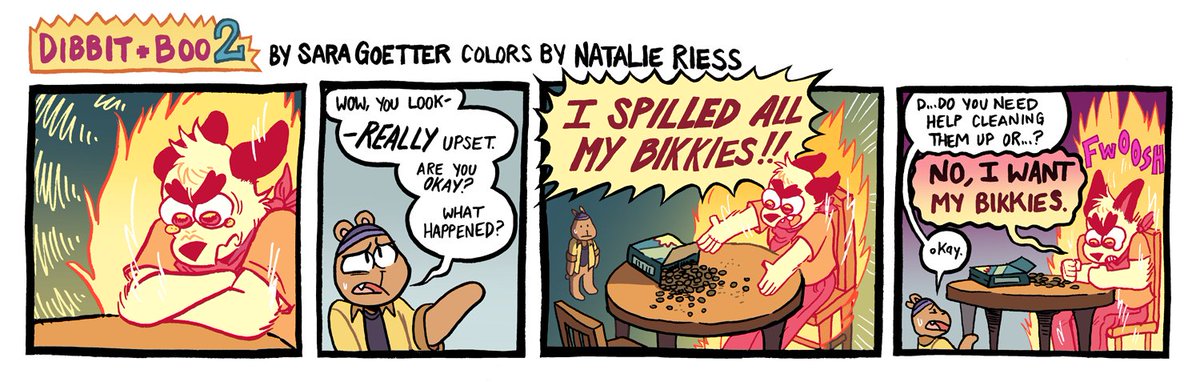 oh hey, it's #webcomicday and I draw one of those! It's called Dibbit + Boo 2, what I like to call a "post-shonen slice of life comic strip". @Snarlbear does a fantastic job on the colors. Links in the thread
