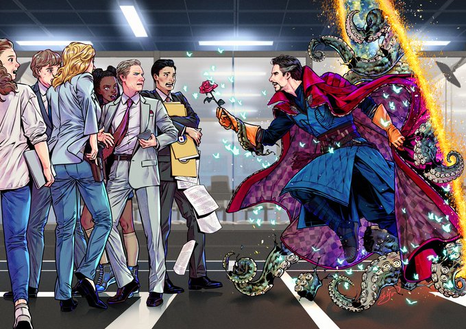 두다다담님 @sherrrlocked 께서 리퀘주신 '뉴욕 상공에서 밤산책 하는 닥스로스' 쪄왔습니다! 넘 늦어서 죄송해욬ㅋㅋㅋ덕분에 간만에 달달한거 그렸네욬ㅋㅋ #EverStrange #EverStrangeEver #ストロス