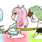 3人リーチでケルベロス(?)に追われるらしい #姫乃ーと #はなまるあーと #由紀描き #たろ絵馬