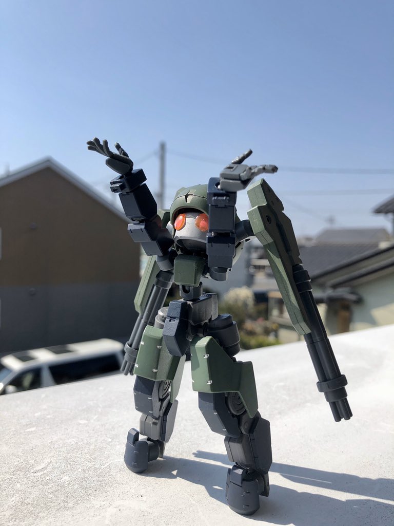 (アーム系使ってフレーム作ってました。多分2時間くらい? これはこれで雑魚モブっぽくていとをかし) #ガンプラ