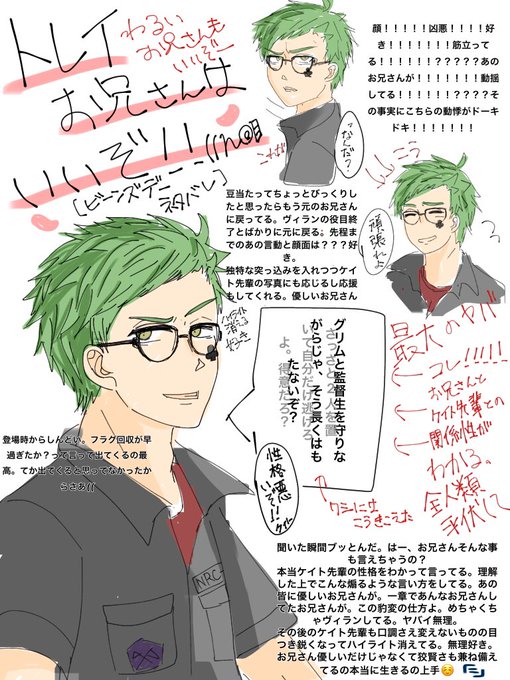 1 8 【ツイステ/ハッピービーンズデーネタバレ】 全人類にお兄さんの良さを見て欲しいし共感して欲しい。字汚ねぇけど。 #ツイステファンアート 20/05/12 01:22