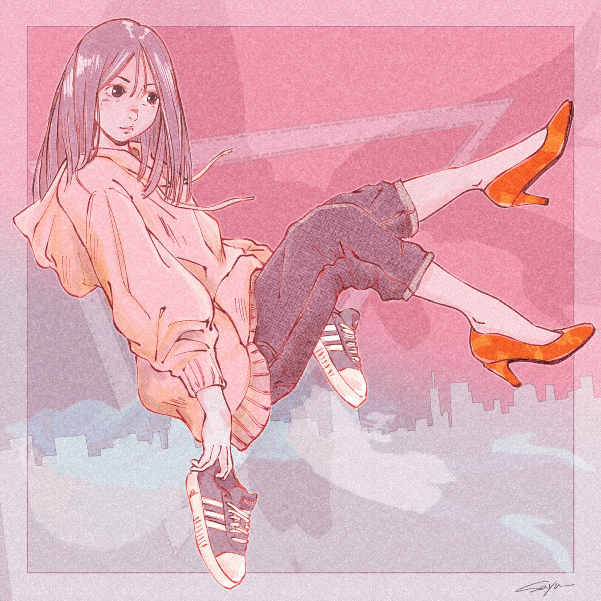 80年代風夏イラスト この時代の空には何かふわふわ浮いてるのです #イラストレーション #ガールズイラスト #女の子イラスト #夏イラスト #絵柄が好みって人にフォローされたい #絵描きさんと繋がりたい #ポカリスエット #ポカリアート