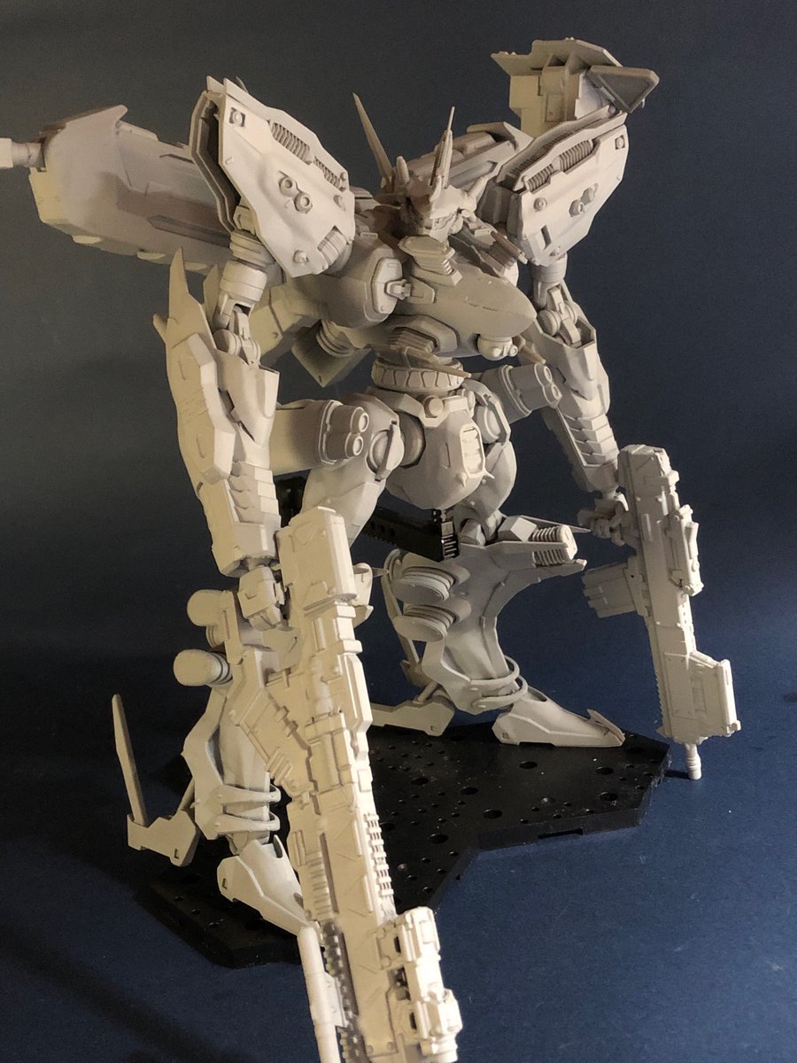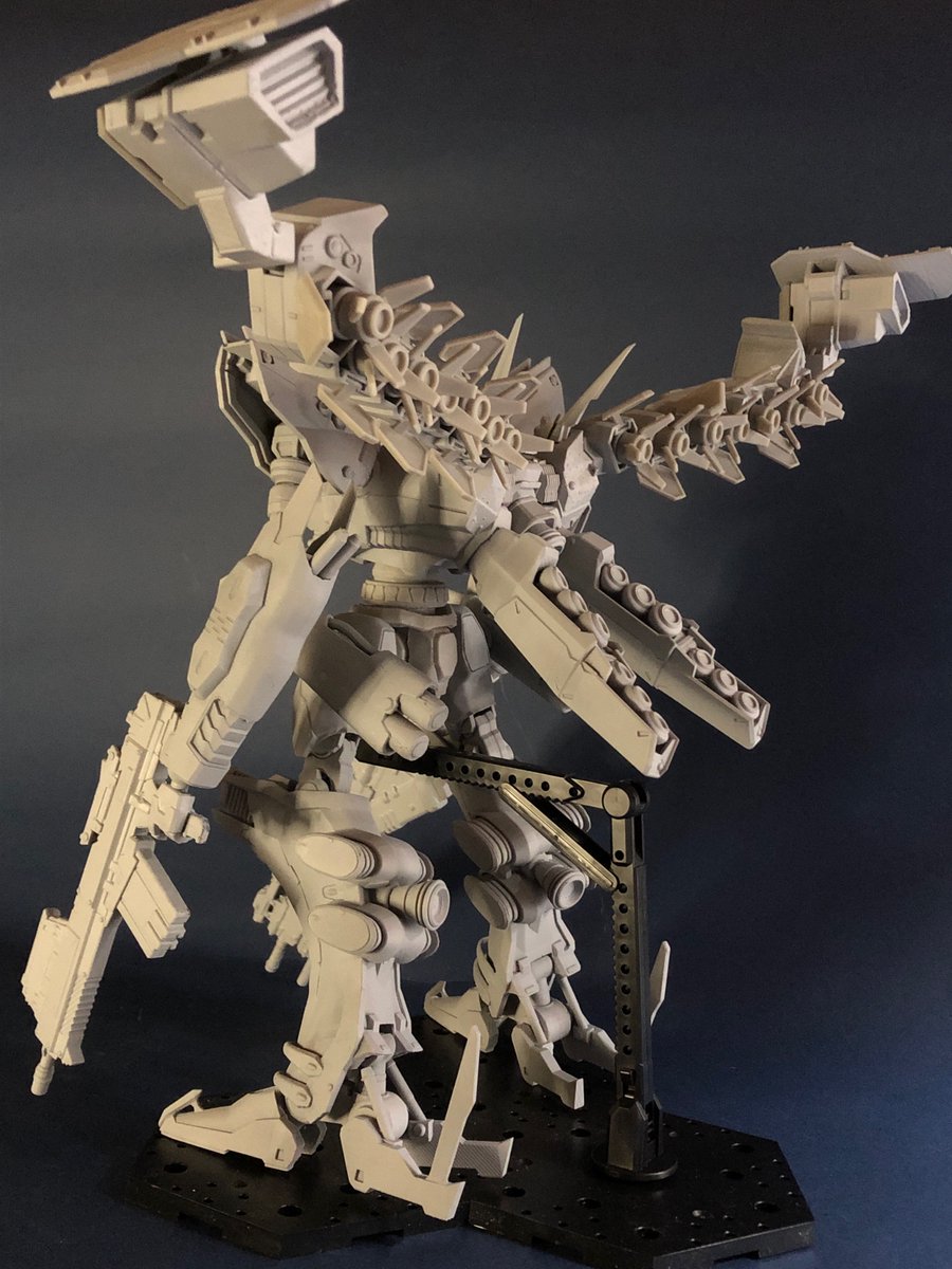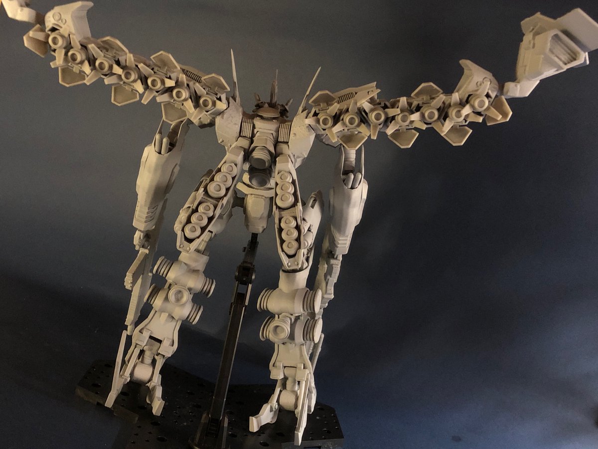 ホワイトグリント。1/48サイズ。頭長高24cm。全幅40cm。パーツ数100以上。未塗装・未組立キット。プリンター出力品。 背部バーニア&バインダーは展開時or収納時をパーツ差し替え式。価格¥25,000(台座は付きません) #WF2023夏 ↓