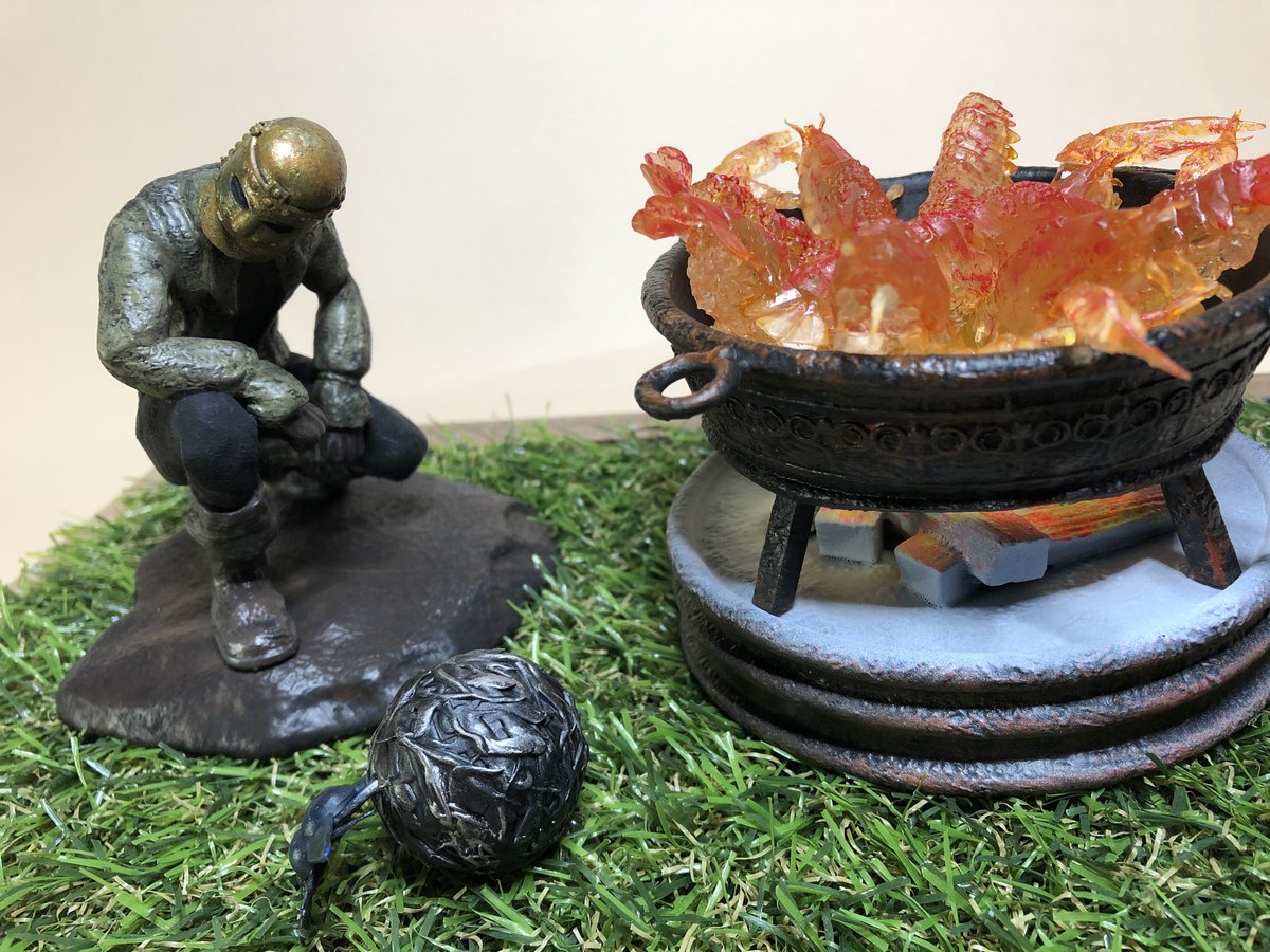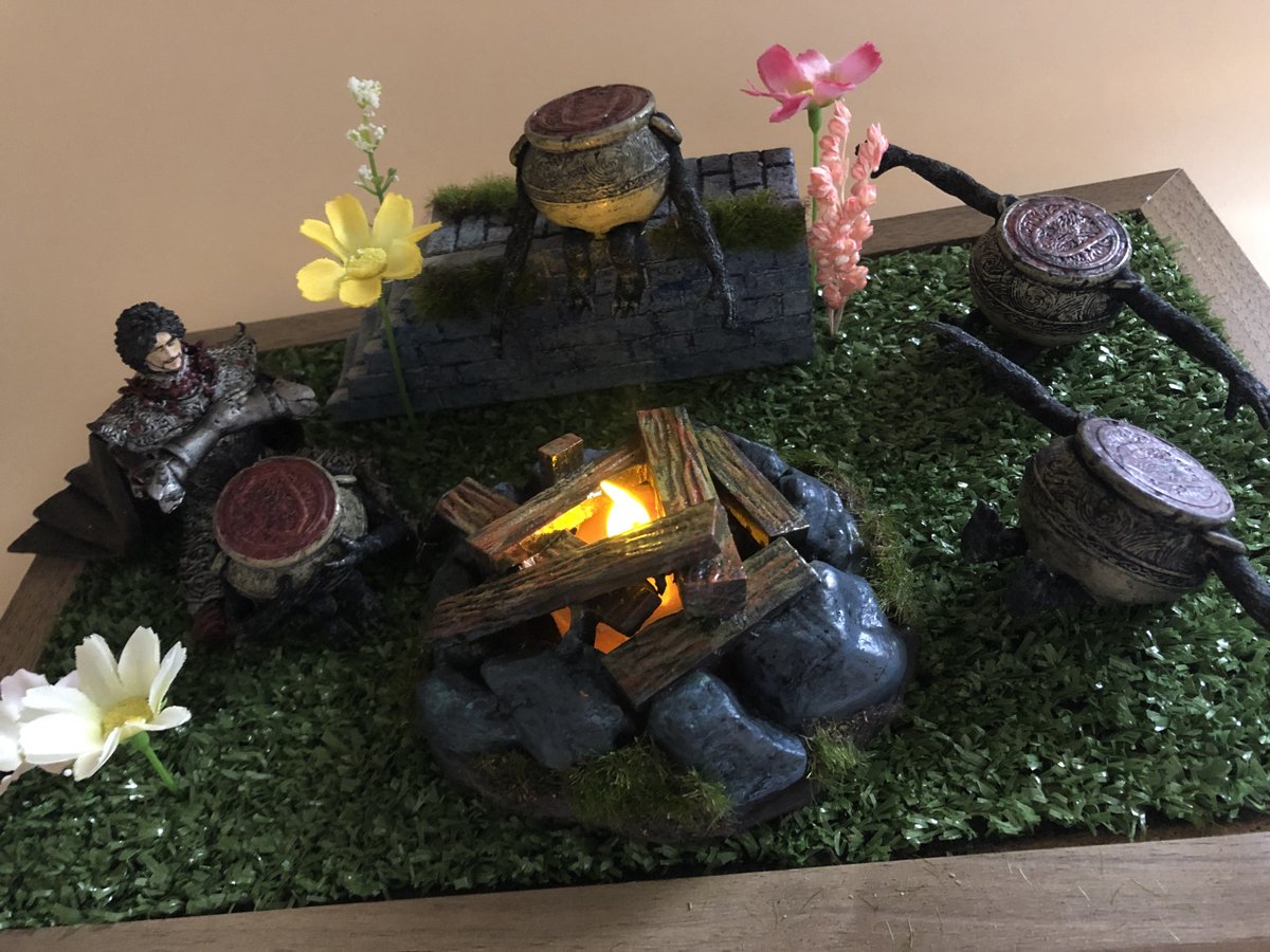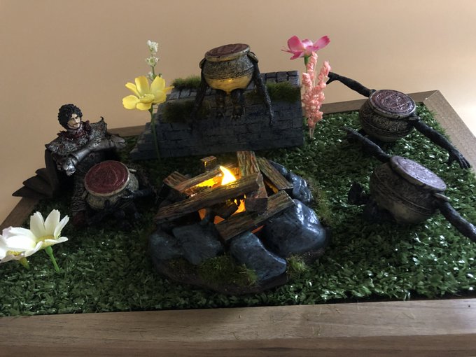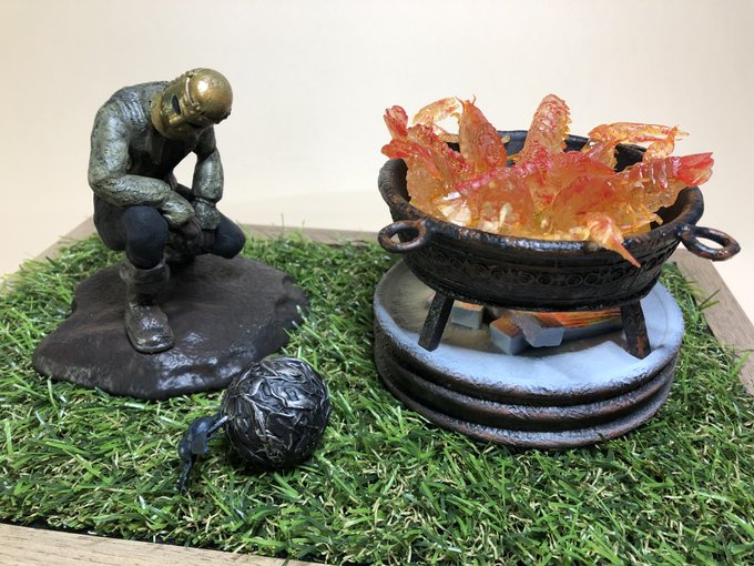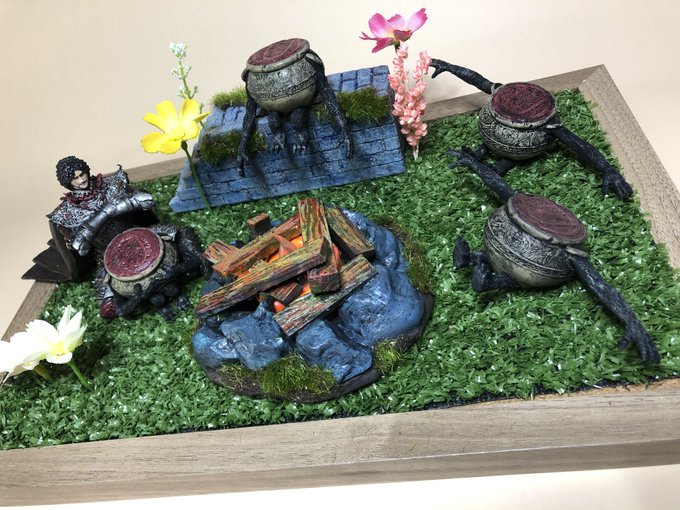 30 95 壺村ジオラマ。 ・村民4人 ・ディアロス・ホスロー ・焚き火ゆらめきLED ・販売数10個:価格¥15,000 twitter.com/creaturehands_… 22/12/25 12:01