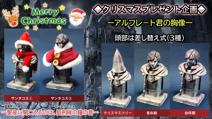 クリスマスプレゼント企画!アルフレ-ト君の胸像。2名様。本日~22日迄受付。 ◆応募の条件 ・相互フォロワー様 ・LINE垢がある人 ・非ガレキディーラー ・本品を大切になさってくれる人 ・応募はDMから ※サンタコス①②は選べません ※抽選は12/23即日DM ※発送はLINEの匿名配送 ※転売禁止