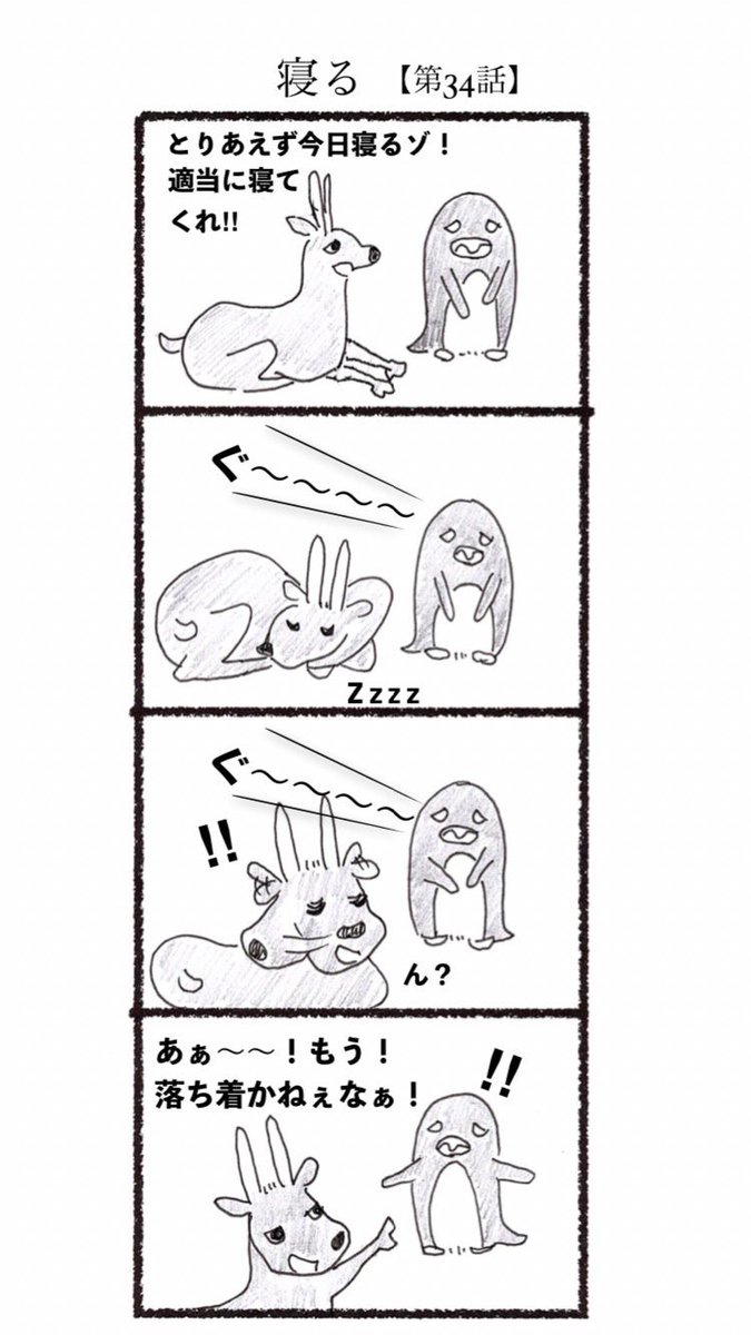第34話 寝る #4コマ #4コマ漫画 #漫画 #マンガ #漫画が読めるハッシュタグ #創作漫画 #ペンギン
