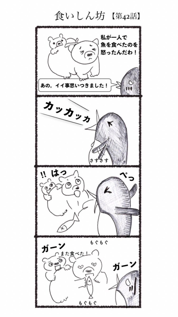 第42話 食いしん坊 #4コマ #4コマ漫画 #漫画 #マンガ #漫画が読めるハッシュタグ #創作漫画 #ペンギン