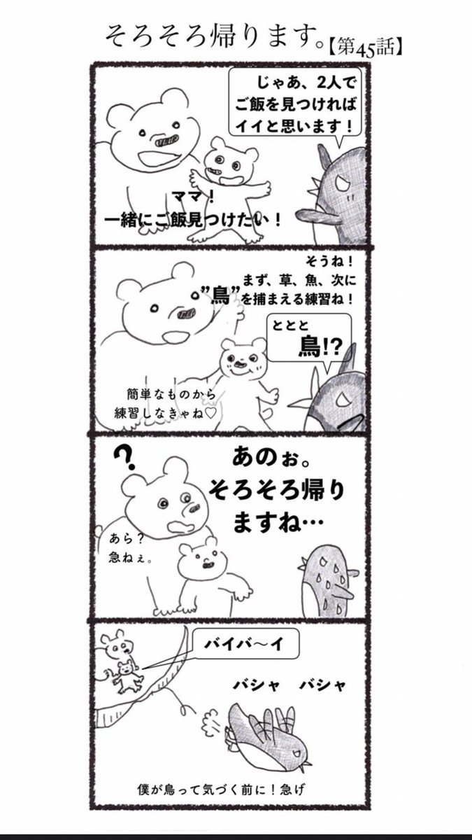 第45話 そろそろ帰ります。 #4コマ #4コマ漫画 #漫画 #マンガ #漫画が読めるハッシュタグ #創作漫画 #ペンギン