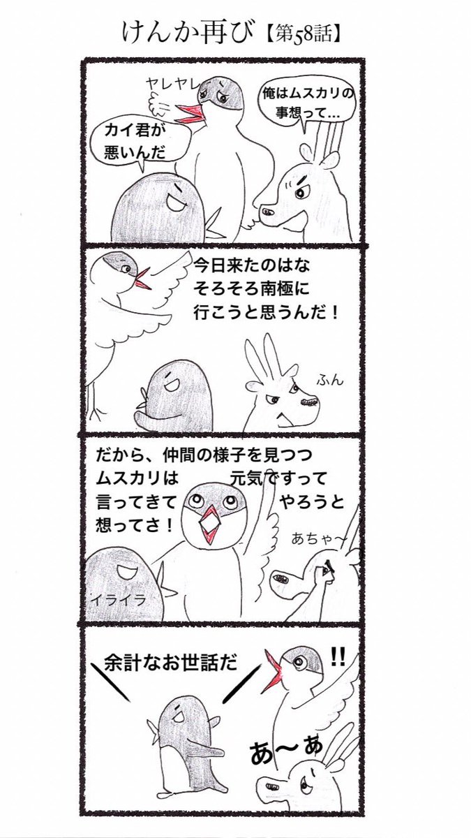 1 0 第58話 けんか再び #4コマ #4コマ漫画 #漫画 #マンガ #漫画が読めるハッシュタグ #創作漫画 #ペンギン 23/02/02 08:59
