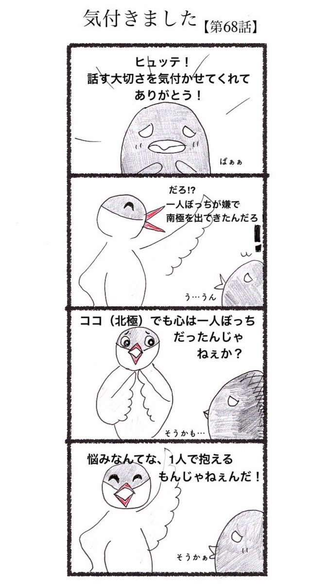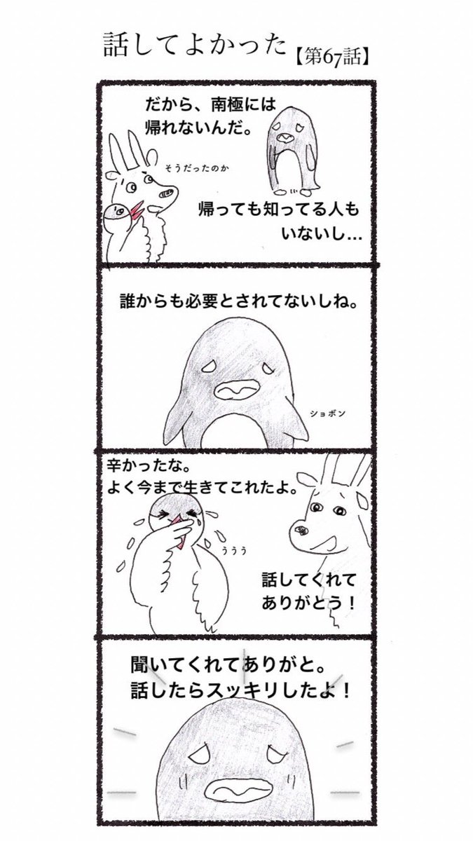 1 1 第67話 話してよかった #4コマ #4コマ漫画 #漫画 #マンガ #漫画が読めるハッシュタグ #創作漫画 #ペンギン 23/03/04 00:50