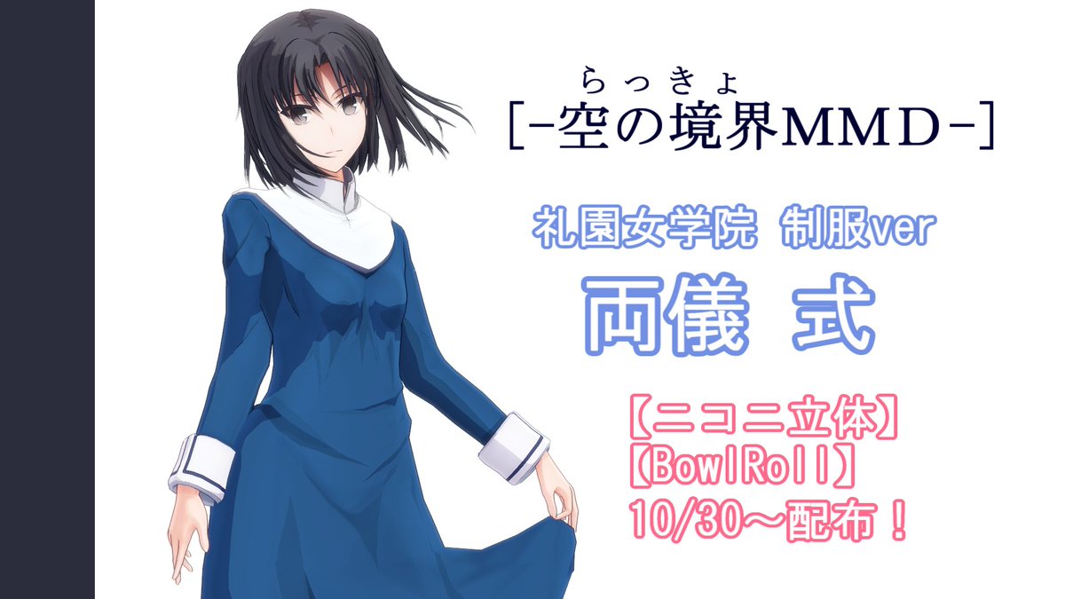 ドドン [MMD用モデル][空の境界MMD] 礼園女学院 制服ver「両儀 式」 ★本日10/30 朝8時からMMDモデル公開します! ニコニ立体でDLできるようになるまで、 しばしお待ちくださいゞ 公開記念踊ってみた動画も朝8時に公開します!