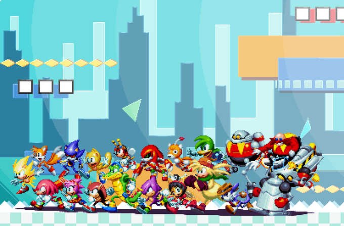 The Fully Finished Pixel Version of this twitter.com/Tyler_J_McGrat… Had to reduce the overall size of the background to make all the characters fit. Also be sure to follow @Tyler_J_McGrath for more Awesome Artwork :D #sonicthehedghog #pixelart