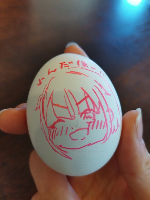 ゆで卵に落書き〜 えむちゃん描いたつもりがちょっとふとっちょになっちゃった気が…(´;ω;`) #今日の落書き