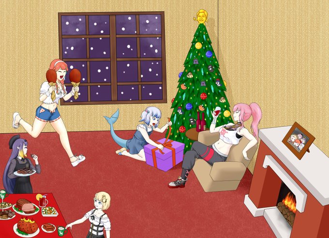 Christmas party #holoMyth #HololiveEN #ArtsOfAshes #callillust #ameliaRT #gawrt #gawrgura #inART