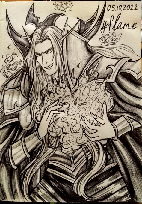 День пять. Кельтас и Пламя 🔥 🔥 🔥 #Kael #Kaelthas #warcraftart #warcraft #inktober #inktober2022 #flame #day5