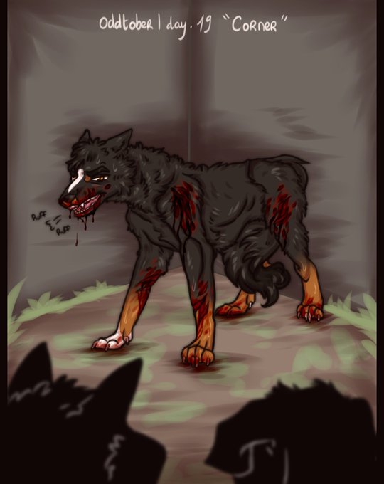 Day 19. "Corner" I used my dog Oc this time! Meowyn inspired me rlly much for this prompt.~ :> #inktober2021