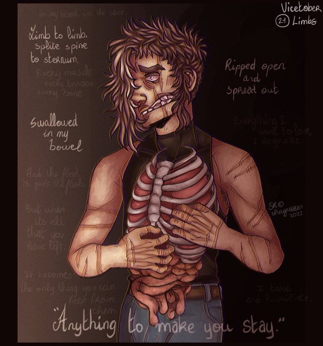 Day 21: Limbs "Limb to limb, split spine to sternum.." Theme song: youtu.be/lqOusaDKjso #Inktober #inktober2022day21